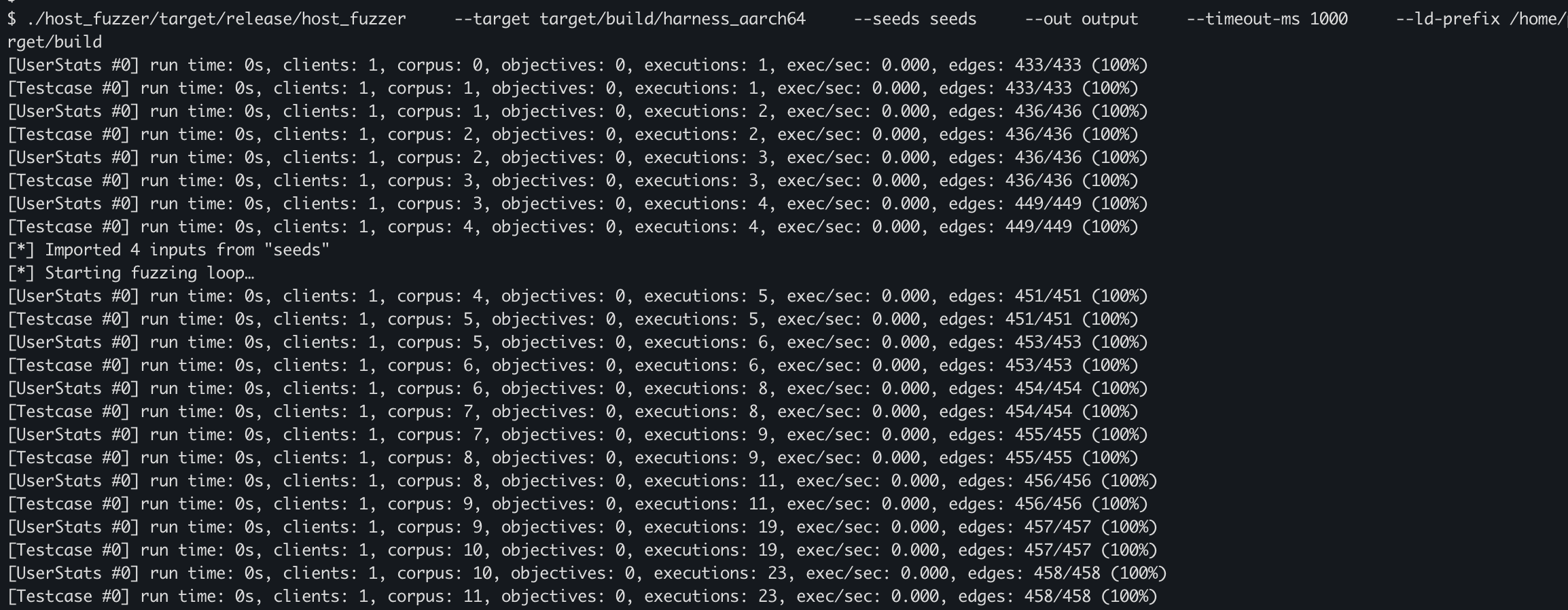 Once your loop is stable, you can layer structured mutations, dictionary mutations, cmp-log, etc.
