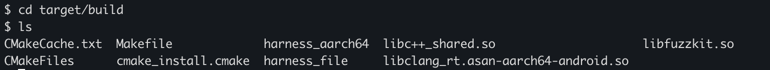 Before running the fuzzer, we need to copy the custom library that the harness depends on, because it isn’t included in the root filesystem. In my case, I created a target/build directory inside the project and copied the required files there.