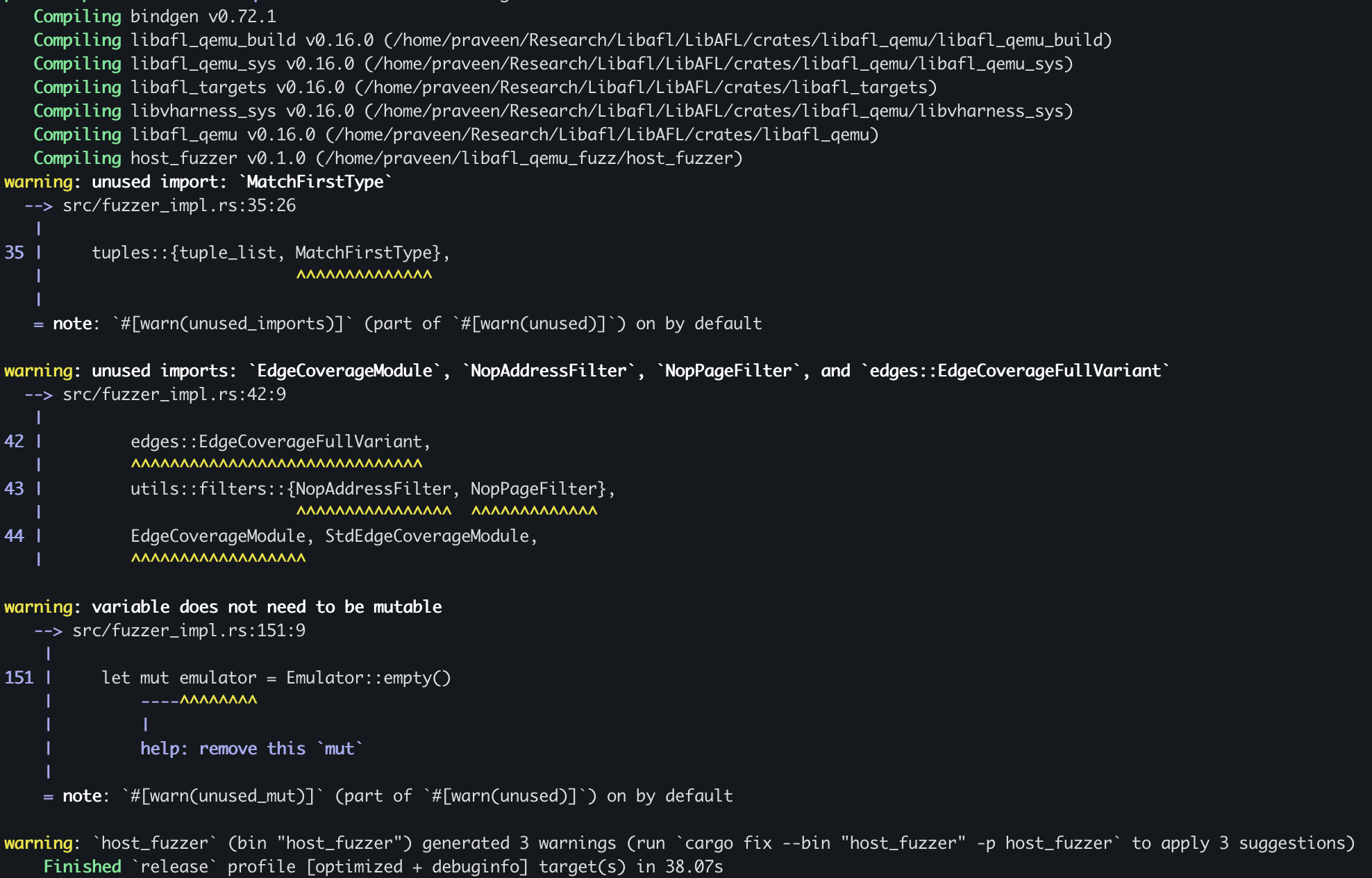 After the fuzzer builds successfully, you’ll find the compiled binary in your project’s target/release/ directory